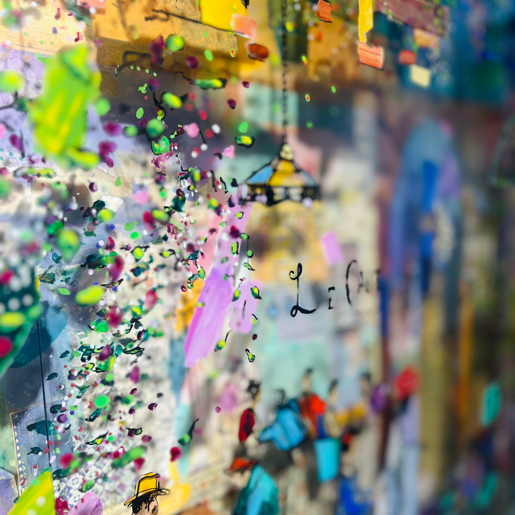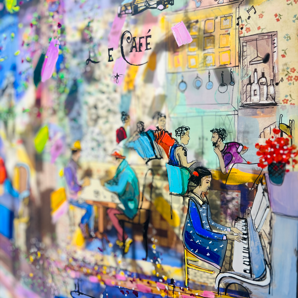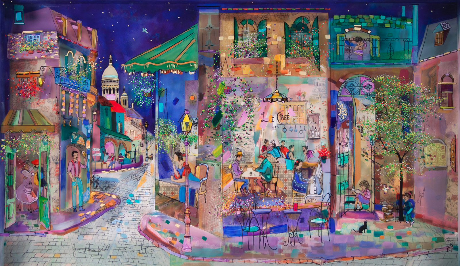 Listen, soft murmurs of conversation fill the air. This hand-painted, three-dimensional scene captures the soul of a place beloved by artists of all kinds — a haven where time slows, colors brighten, and friendship flourishes.