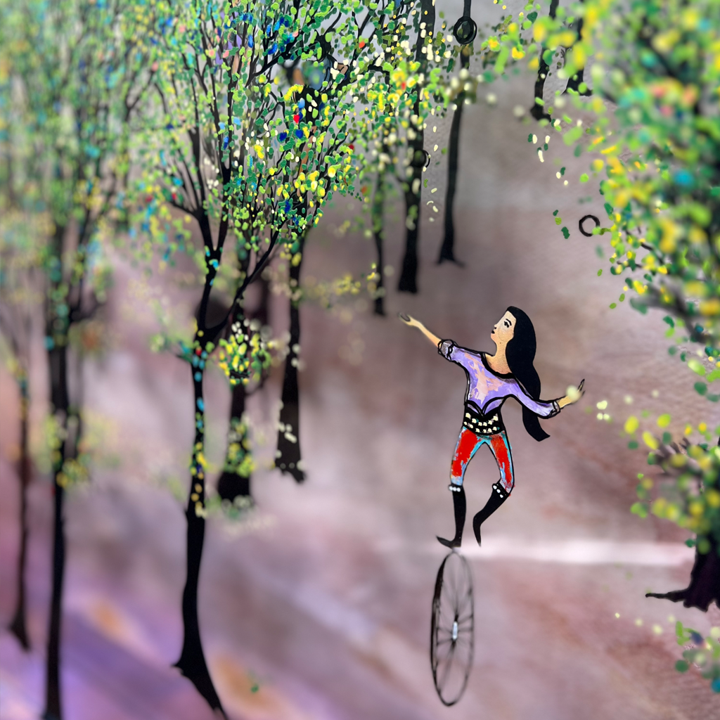 aound every bend lay the potential for unexpected delight—a young girl juggling on a unicycle, a tightrope walker dancing among the treetops, a mystical creature awaiting discovery.